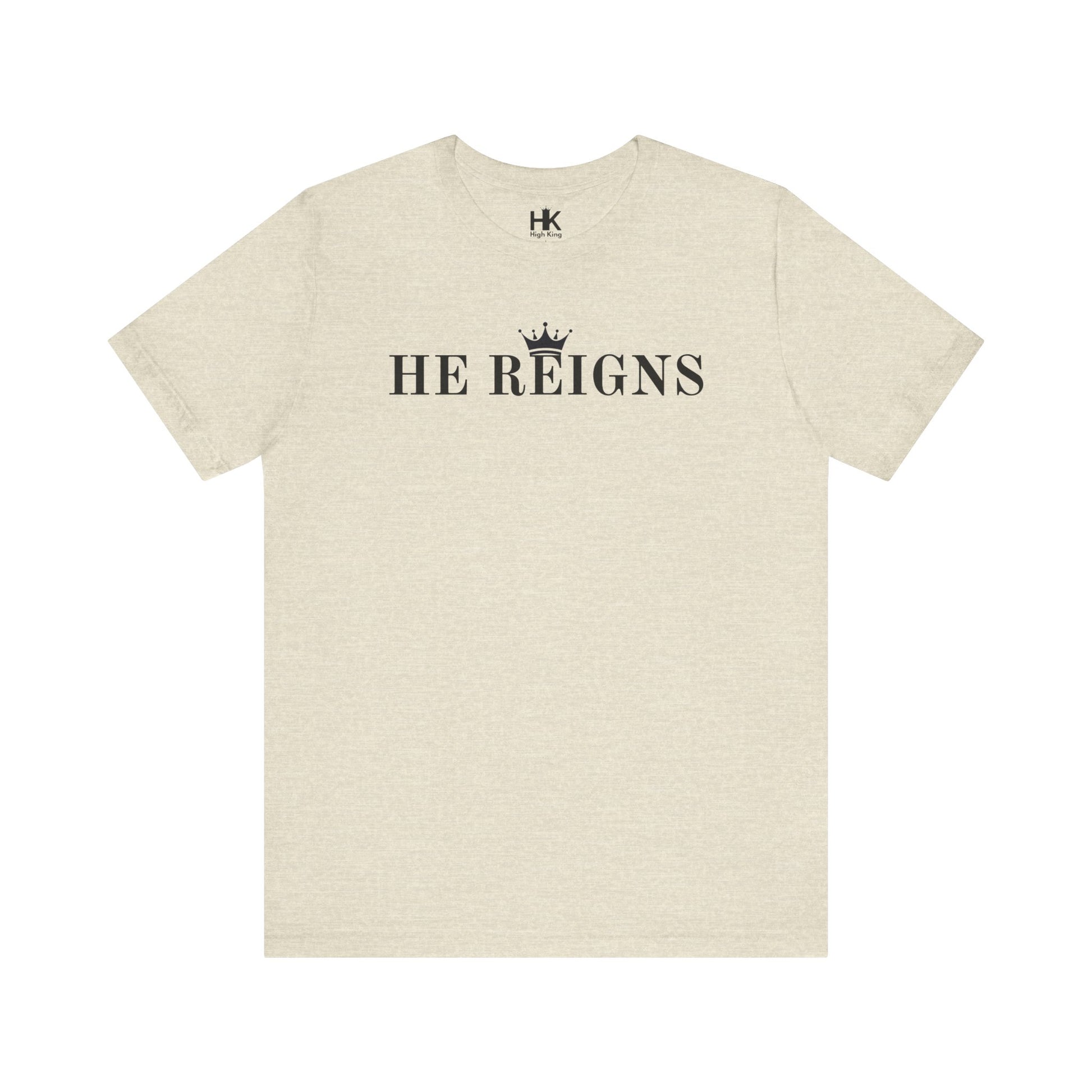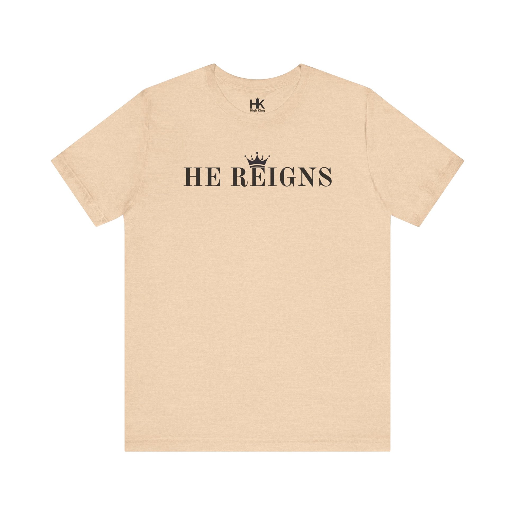 👑 Bold Graphic Message: "He Reigns" paired with a clean crown icon says it all—simple, strong, and centered on truth.